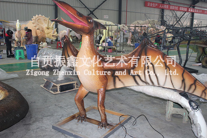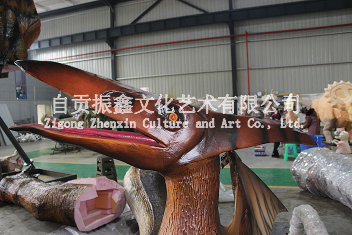 恐龙科普展览模型、电动机械仿真恐龙、会动会叫的恐龙模型要怎么选?来自贡振鑫文化艺术有限公司。我们从事各种仿真模型的设计制作,以专业、全面、优质的服务,为客户提供满意的产品。仿真恐龙模型是公司的特色商品,根据恐龙复原图或恐龙设计图来制作,有仿真硅胶材质、仿真玻璃钢材质和仿真泥塑材质的,不同材质的仿真恐龙模型呈现的效果不同。其中,仿真硅胶材质的最受欢迎,下面这款仿真风神翼龙,就是公司仿真硅胶材质的仿真恐龙模型。