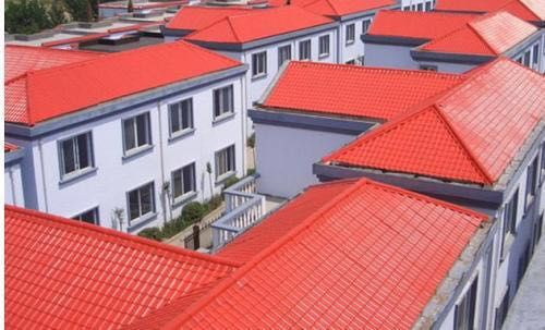 合成树脂瓦具有颜色持久、质轻、自防水、坚韧、保温隔热、隔音、耐腐蚀、抗风防震、抗冰雹、抗污、绿色环保、防火、绝缘、安装方便等优点,而且造型美观立体感强,颜色极具中国元素,使得它被广泛应用于各类永久建筑屋面装饰,尤其目前国内大力推广的“平改坡”工程。