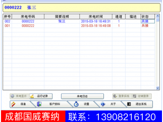 4、客户信息弹屏功能界面,客户来电后可以直接在计算机看到客户的电话号码,地址,姓名等详细信息。