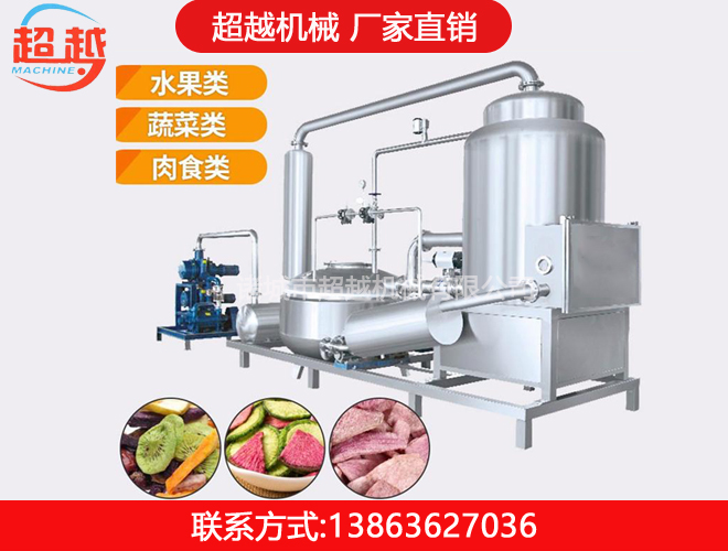 ●保香作用:采用真空油炸,原料在密封真空状态下被加热。原料中的呈味成份大多数为水溶性,在油脂中并不溶出,并且随着原料的脱水,这些呈味成份进一步得到浓缩。因此采用真空油炸技术可以很好地保存原料本身具有的香味。