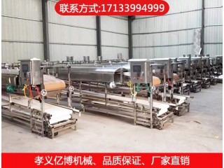 全自动粉皮机生产工艺流程 全自动粉皮机需厂房八间,长24米,宽3米,高4米,热风炉房在车间外另建。  原料入机 → 搅拌自动上料 → 下料到不锈钢带成型 → 蒸箱煮熟 → 冷却 → 从不锈钢带脱离 → 烘干箱烘干 → 切割 → 烘干 → 排潮 → 包装。