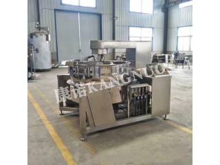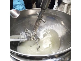 搅拌系统:搅拌方式采用特殊的倾斜式传动,使用的行星式搅拌器与锅体充分接触。搅拌系统采用自转公转相结合的方式,其传动比为不整数传动比,保证锅内无任何搅拌盲点。