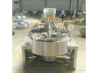 搅拌系统:搅拌方式采用特殊的倾斜式传动,使用的行星式搅拌器与锅体充分接触。搅拌系统采用自转公转相结合的方式,其传动比为不整数传动比,保证锅内无任何搅拌盲点。