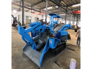 履带式挖掘装载机(俗名:扒渣机)是一种连续生产的高效率出矿设备,主要用于矿山岩巷、半煤岩巷掘进,也可以用于引水洞、铁路隧道施工和国防洞窟施工中的装载作业,扒渣机与我公司生产的煤矿用液压钻车配套使用可实现煤矿掘进机械化作业,大大提高掘进速度,可适用于断面为2.1×2.1米以上,坡度±1 8 度的巷道。