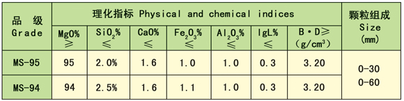 中档镁砂是以MgO含量为97%的轻烧氧化镁为原料,经压球、高温竖窑煅烧等工艺生产而成。产品烧结程度好,结晶致密,是生产中档镁质耐火制品的优质原料。