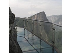 玻璃栈道是由钢化玻璃凌空高架在悬崖峭壁上形成旅游观光悬空透明玻璃栈道,玻璃栈道的钢化玻璃载重安全系数已经堪比传统的钢筋混泥土,游客再也不用担心安全问题,也是玻璃栈道商业化的基础。[1]