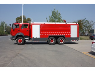 2、消防车采用双排整体式结构,视野开阔,乘员多,可乘坐6人;消防车可在行进中进行灭火,射程远,灭火战斗力强。
