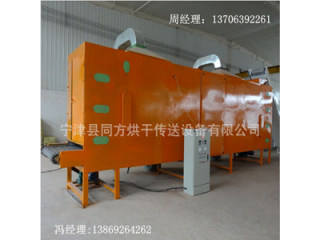 带式烘干机是一种批量、连续式生产的干燥设备,主要加热方式有电加热、蒸汽加热、热风加热。其主要原理是将物料均匀的平铺在输送带上,由传动装置拖动在干燥机内往返移动,热风在物料间穿流而过,水蒸气从排湿孔中排出,从而达到干燥的目的,箱体长度由标准段组合而成,为了节约场地,可将烘干机制成多层式。