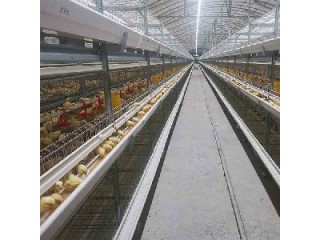 层叠式肉鸡笼养提高了单位面积的饲养量,提高了规模化养殖的土地利用率和劳动生产效率 。 层叠式笼养设备一般为 3 或 4层,部分现代化养殖场