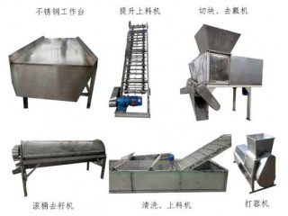 我厂全自动冬瓜机 ,冬瓜蓉加工生产流水线集冬瓜去皮、切块、去籽、清洗、打蓉一条线,省时、省人工。