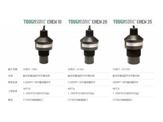 ToughSonic CHEM传感器专为存在腐蚀性化学液体或气体的测量应用而设计。它们的整体注塑PVDF外壳和全环氧树脂灌封提供IP68浸入式保护。上下螺纹选项和易于安装的油箱也使其成为良性液位应用的理想选择。每种型号都包括坚固耐用的压电传感器,硬化电子元件,2米永久连接电缆和SenixVIEW传感器配置和分析软件。