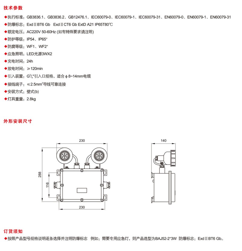 BAJ52-系列防爆应急灯(ⅡB、ⅡC、Extd)