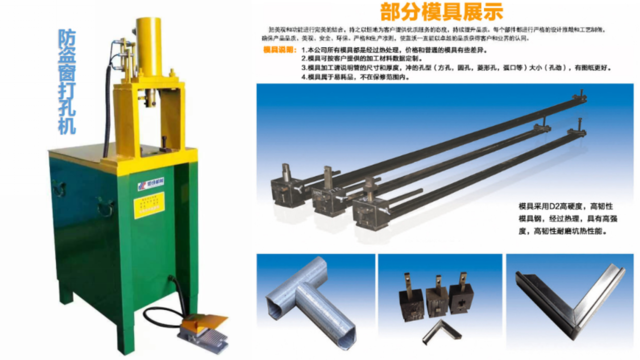 是主要用于屡遭业冲压各种铝合金、不锈钢型材管件的机器设备。本产品适用于需要对不锈钢防盗网、防盗门窗、锌钢护栏、楼梯扶手进行冲孔的行业,主要是安全生产,具有智能定位、高效耐用、易于操作、性价比高、省电省人工等特点。