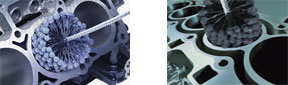 潜山县谐达特种刷业制品厂生产的内孔磨料球头刷作为一种抛光新兴的毛刷产品,其应用范围非常广泛,常用于液压伐孔内槽边去毛刺,交叉孔的去毛刺,空调冰箱(压缩机)去毛刺,缸体去毛刺,发动机零配件、机械加工、孔内加工、刹车榖加工;同时也适用于一些椎圆型、锥型、文氏管型孔的抛光。磨料球头刷能轻便快捷地对各种形状、尺寸的汽缸、阀门、管腔、管道进行最佳的表面处理。抛光刷能够自动定心,自动校准的对孔表面进行精细一致的加工,不影响工件原有的精度和尺度,使用方便、安全、经济、效果显著。