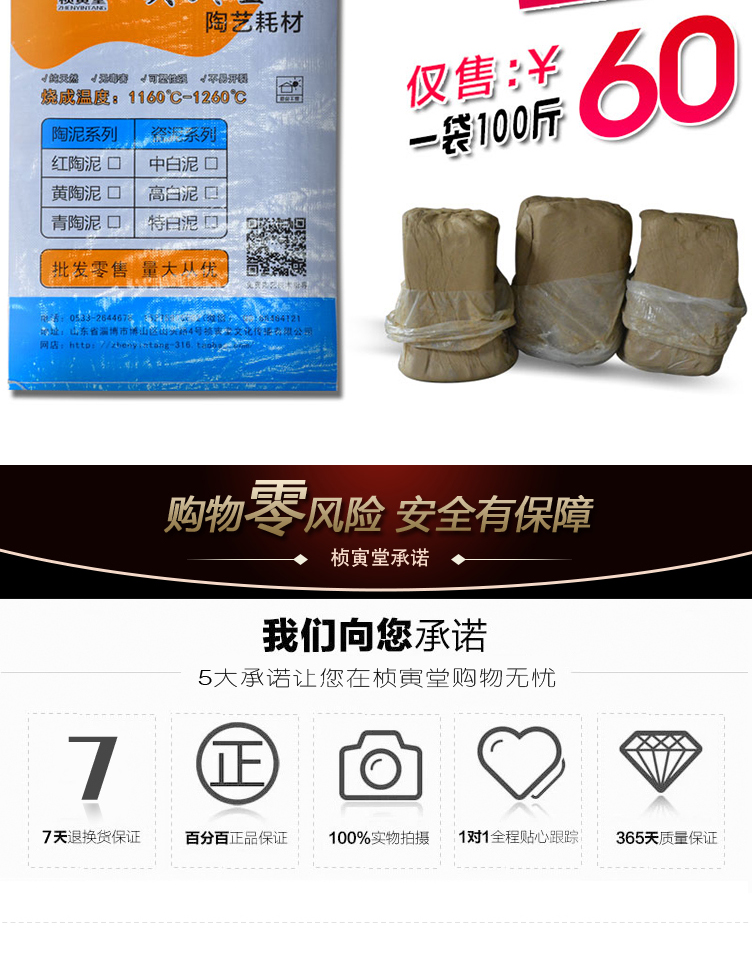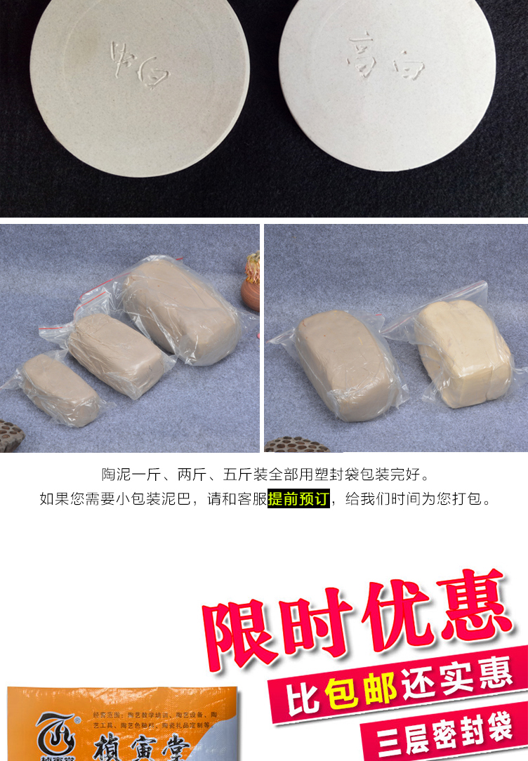 青泥2斤,中白瓷泥2斤,高白瓷泥2斤